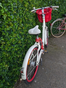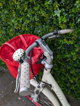 Le Chic à la Francaise ! Poignée et selle cuir s'il vous plait ! Et coordonnées à la sonnette tout comme jantes, panier et chaine, Magnifique vélo produit en France en série limitée numérotée.